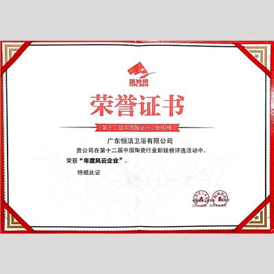 獎 項:第十二屆中國陶瓷行業新銳榜-年度風云企業