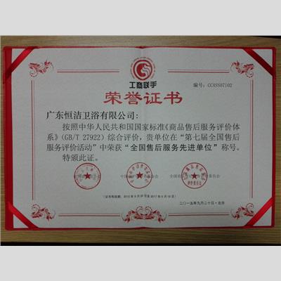 獎 項:第七屆全國售后服務評價活動-全國售后服務先進單位