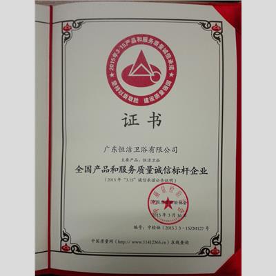 獎 項:全國產品和服務質量誠信標桿企業