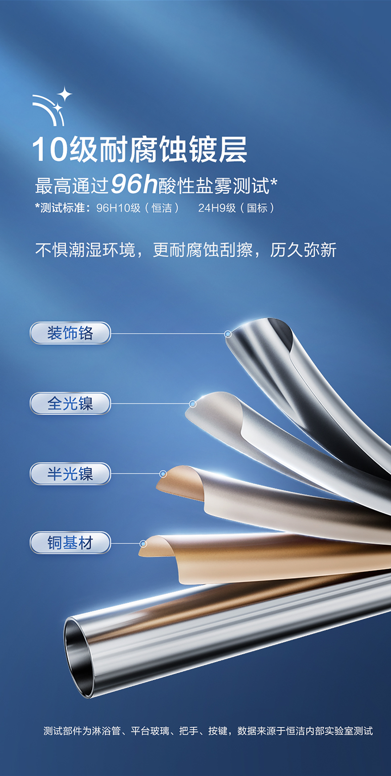 - 10級(jí)鍍層技術(shù),最高通過96h酸性鹽霧測試,持續(xù)光亮,經(jīng)久耐用