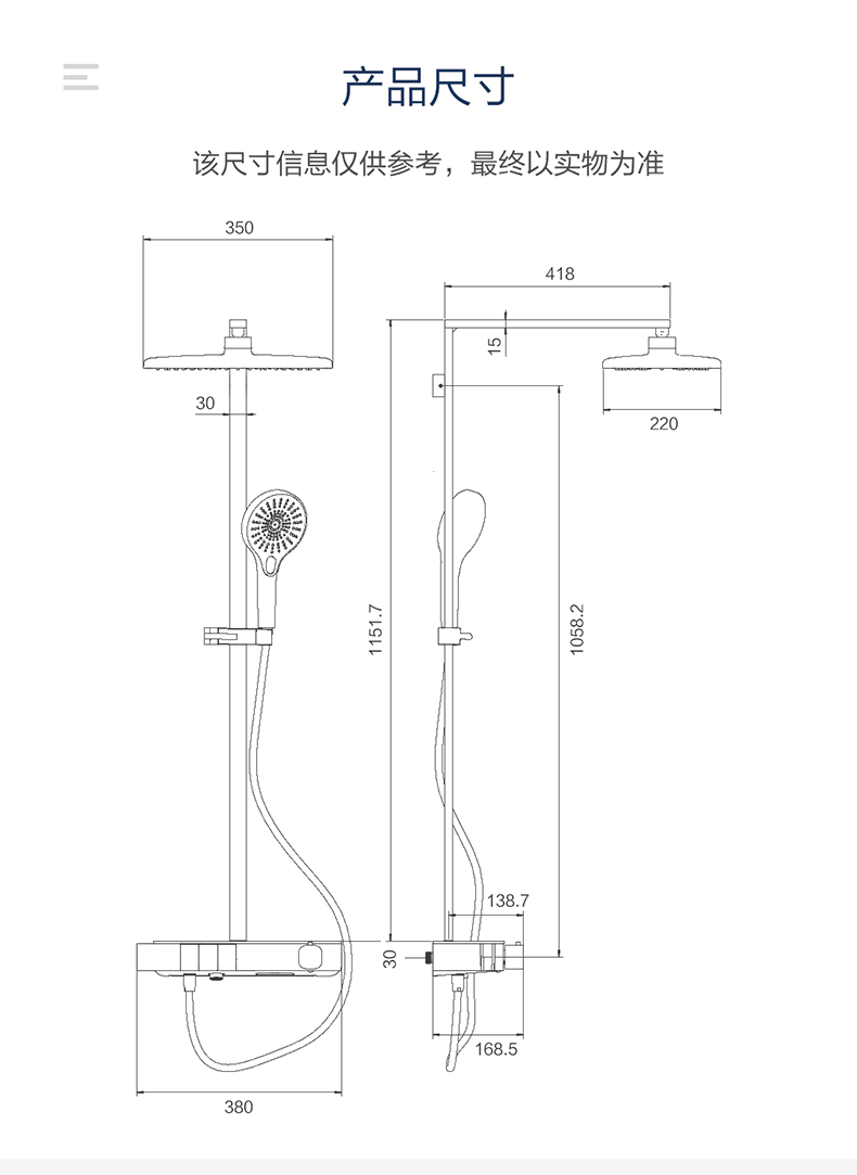 - 350mm超大頂噴,更大噴淋范圍,盡享舒爽淋浴