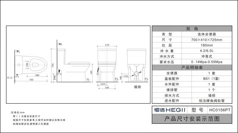 HC0156PT節水坐便器(墻排)